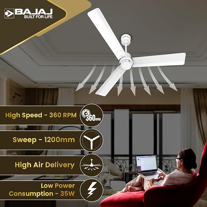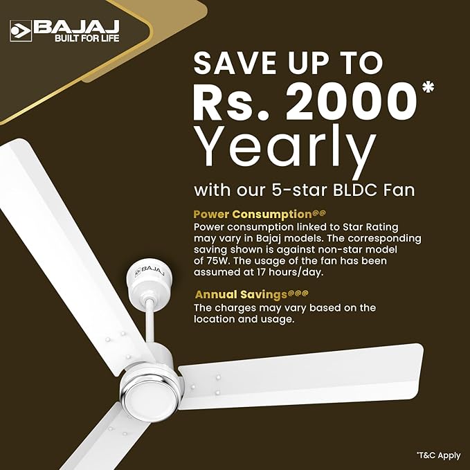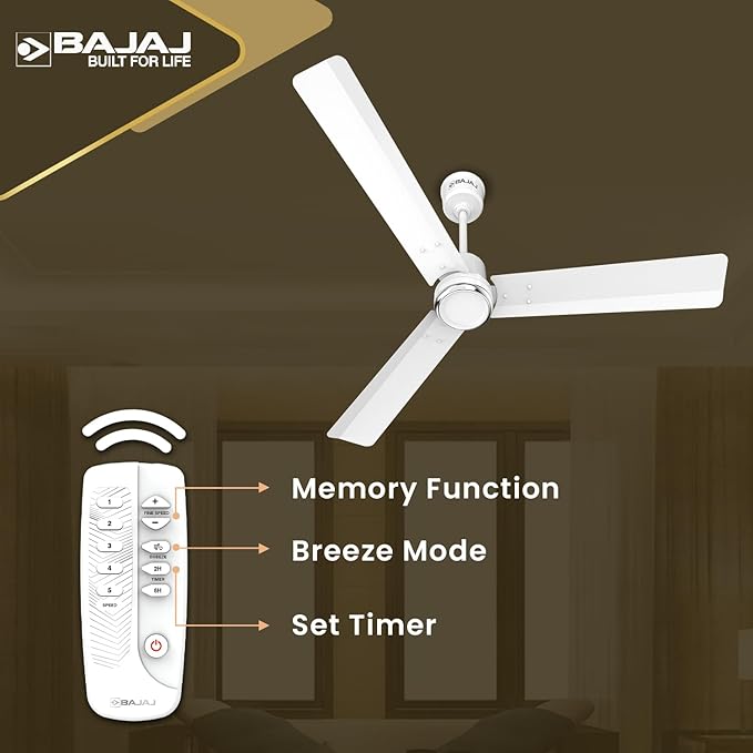 Bajaj Classico Sleek Plus 1200MM (48") BLDC Ceiling Fans For Home | BEE 5 Star Rated Energy Efficient Ceiling Fan | High Energy Density Motor | RF Remote | 2-Yr Warranty 【Base White】