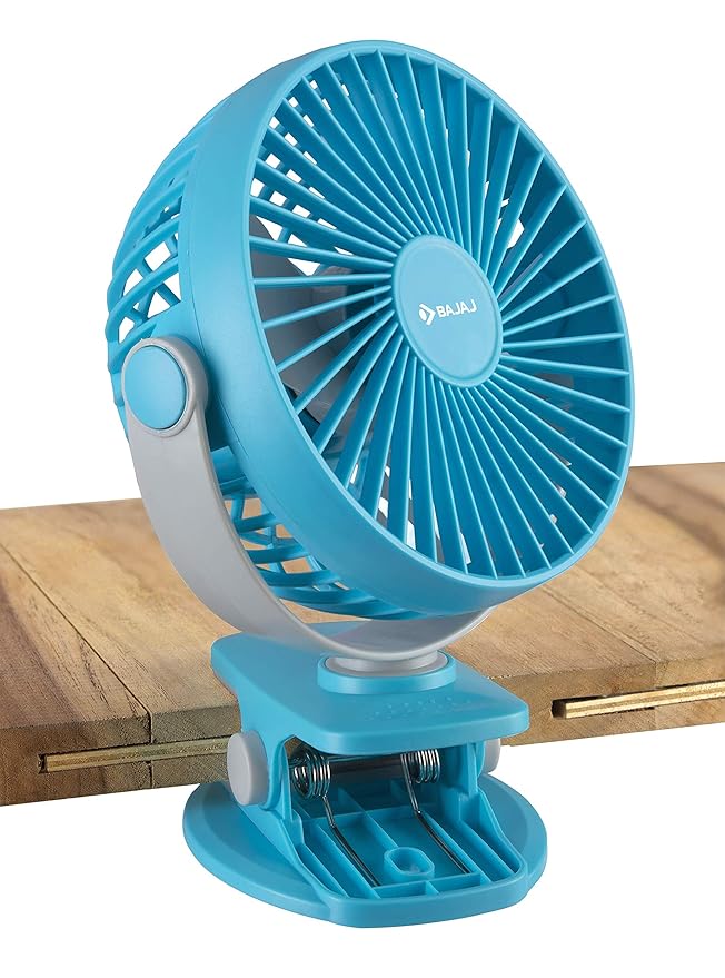 Bajaj Pygmy Mini Fan 110MM | USB Charging | Multi-Clip Function | Rechargeable | 4-Hr Back-up | Silent Operation | Longer Battery Life | Energy Efficient | Portable 【Blue】