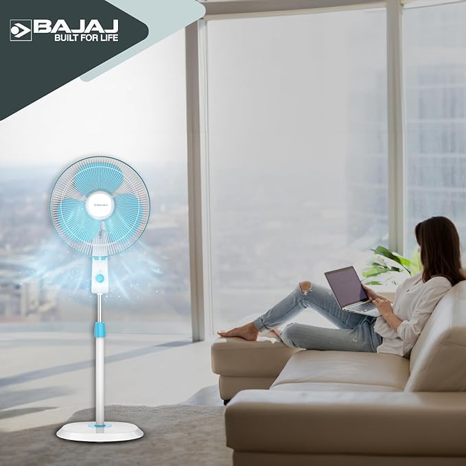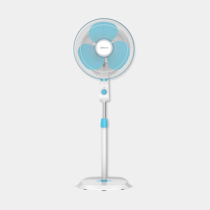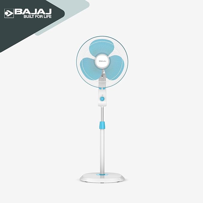 Bajaj Robusto 400mm Oscillating Pedestal Fan for Home | DuraBreezeTM Technology | Surge Protection | 100% Copper Motor | High Air Delivery | Modern Décor | 3 Years Warranty 【Icy Blue & White】