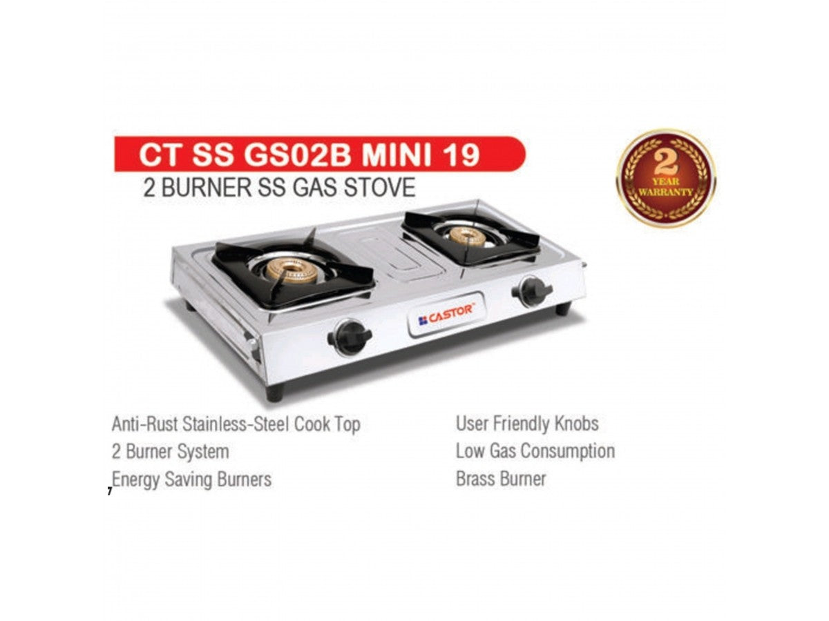 Castor 2 Burner Mini Stainless Steel Gas Stove CTSSGS02MINI19