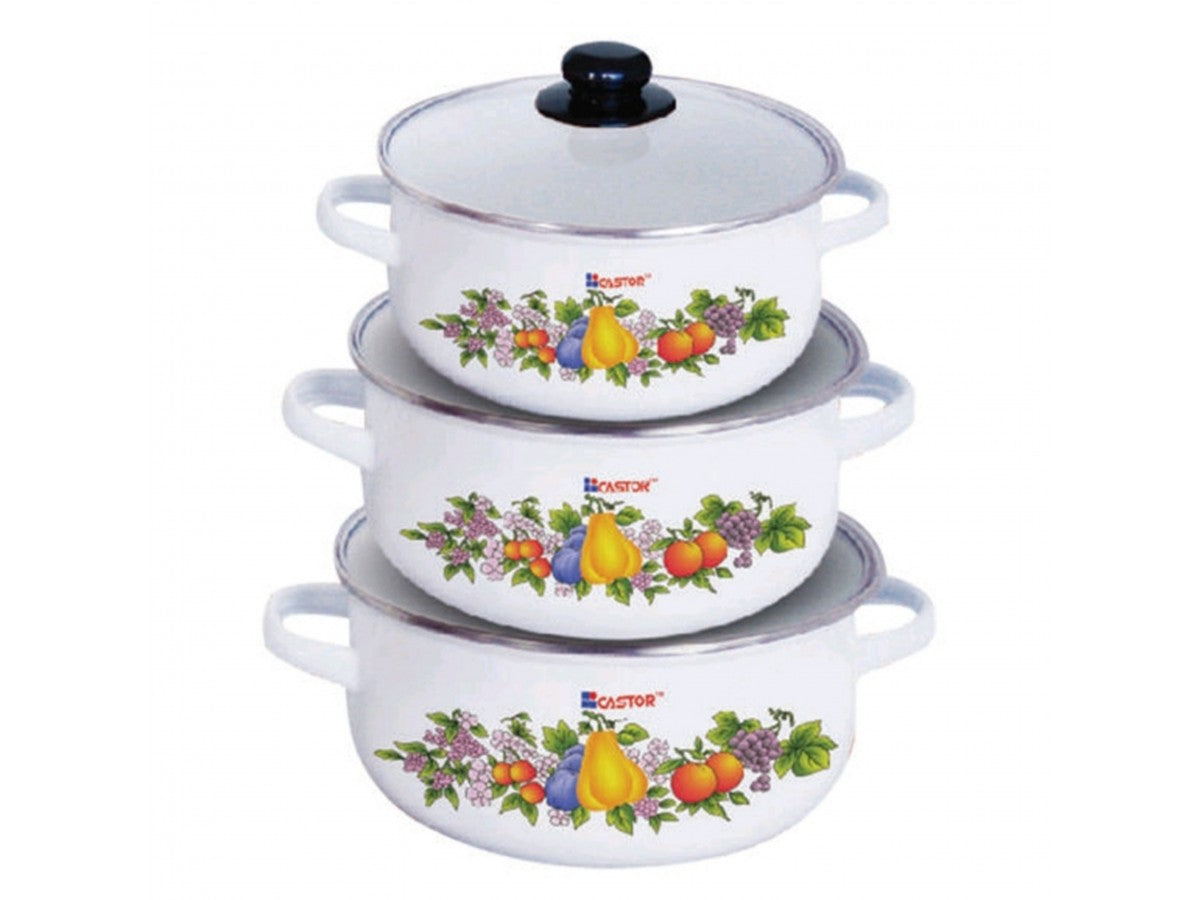 Castor Enamel 3pcs 3mm Casserole with Glass Lid 16,18,20 cm CT ECS1633