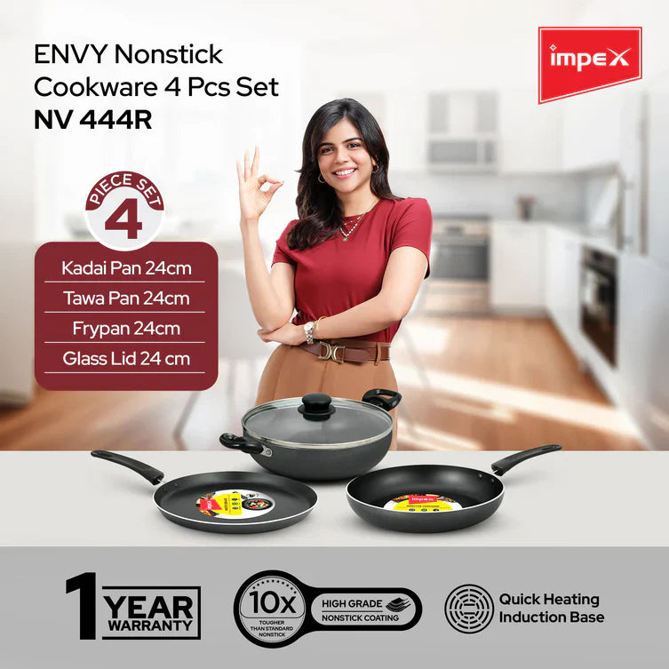 Impex Envy 4 Piece Nonstick Cookware Set (NV 444R) - Grey