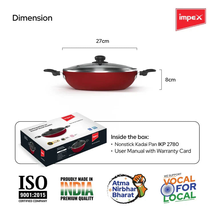 Impex Premium Nonstick Aluminium Kadai Pan (IKP-2780)