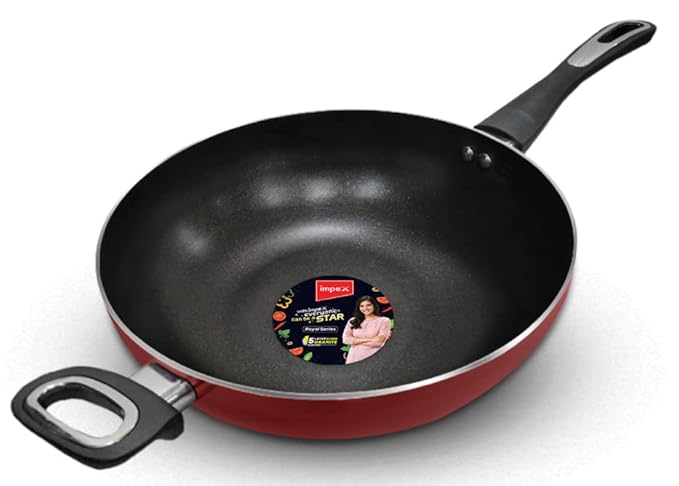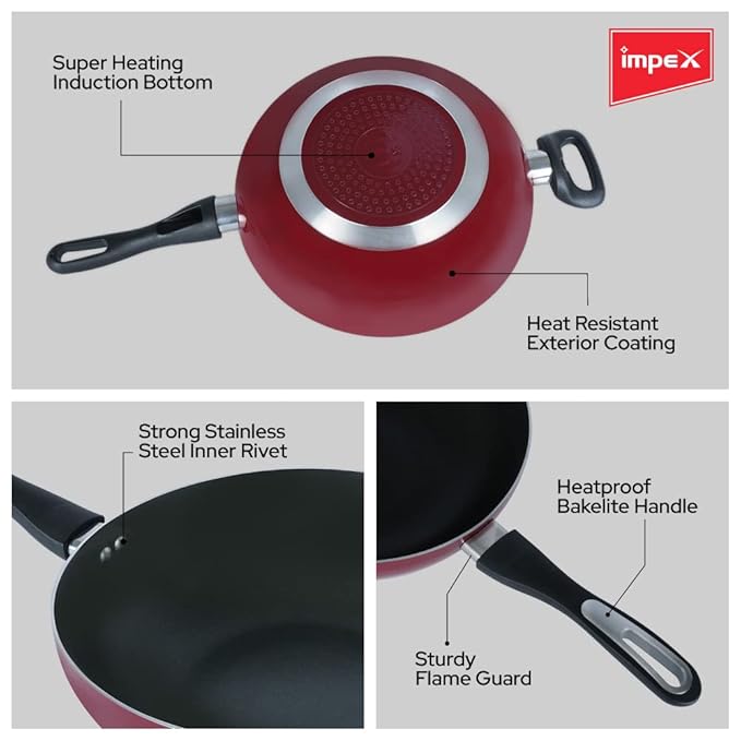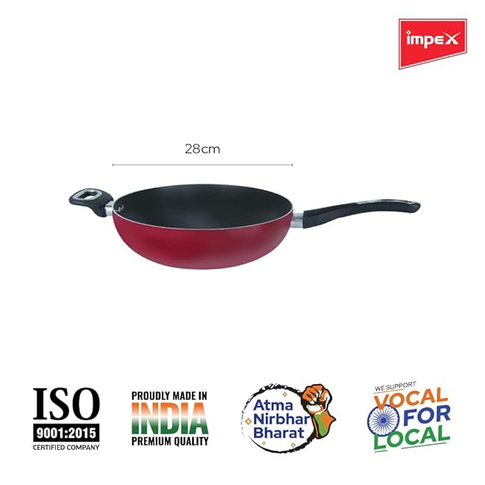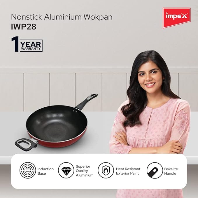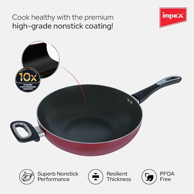 Impex Rhythm Nonstick Aluminum Wok pan 28 cm (IWP28) with Induction Base deep Wok pan Compatible for Induction, Electric and Gas Stove Tops Having 1 Year Warranty (Maroon Metallic)