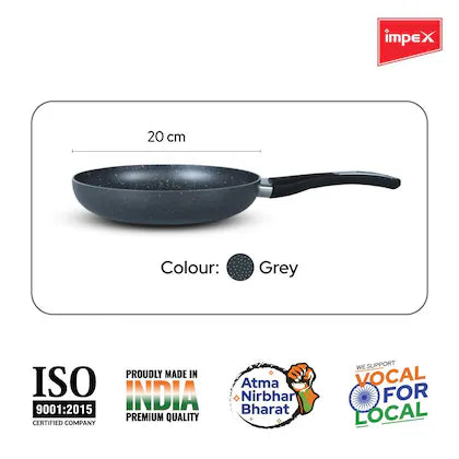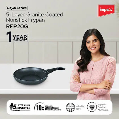 Impex Royal Granite nonstick Fry pan 20 cm (RFP20G) with 5-Layer Granite Coating, Induction Base Frypan Compatible for Induction, Electric and Gas Stove Tops Having 1 Year Warranty (Grey)