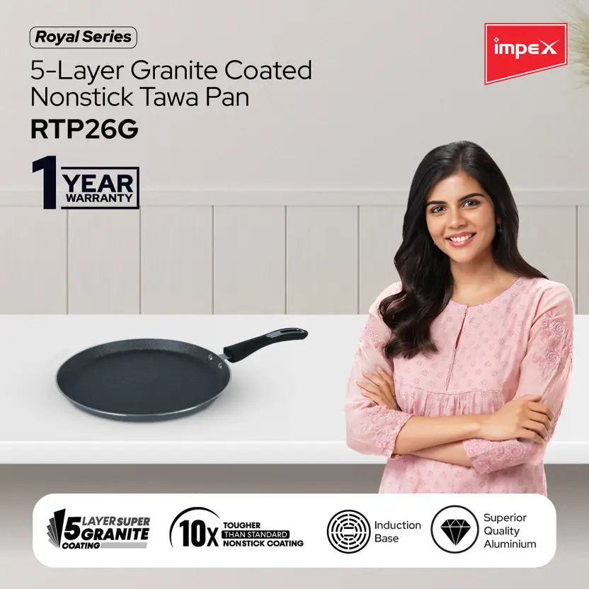 IMPEX Royal Granite Tawa pan 26 cm IB (RTP26G) Tawa 26 cm diameter (Aluminium, Non-stick, Induction Bottom)