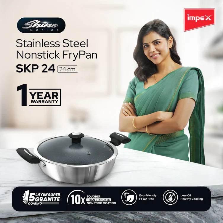 Impex Shine(SKP 24) Stainless steel Non-stick Kadhai Pan 24 cm