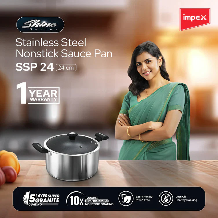 Impex Shine(SSP 24) Stainless steel Non-stick Sauce pan 24 cm
