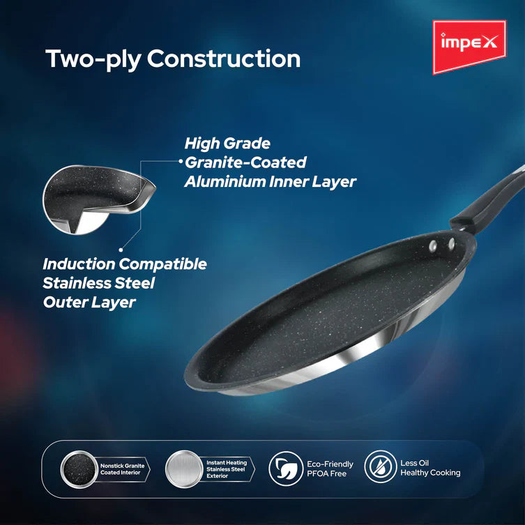 A standout feature is the 10-layer granite coating, which is 10 times tougher than standard nonstick coatings, promising exceptional durability and longevity. Impex is confident in the quality of this product and stands behind it with a 1-year domestic warranty. The sales package includes one Tawa Pan, making it a valuable addition to your kitchen for various cooking needs. Whether you're making rotis, dosas, or sautéing your favorite ingredients, the Impex Tawa Pan is your reliable and durable kitchen companion, ready to transform your culinary creations into culinary masterpieces.