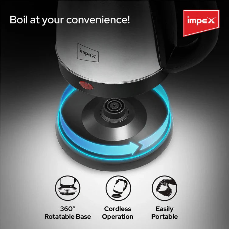 Impex STEAMER-1501 Stainless Steel Electric Kettle (1.5 Litre,1500 Watts,Silver)