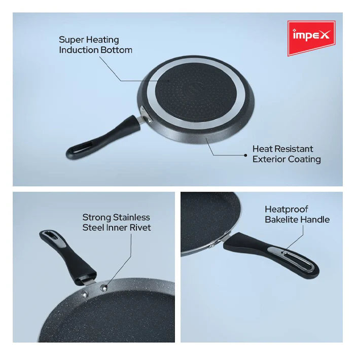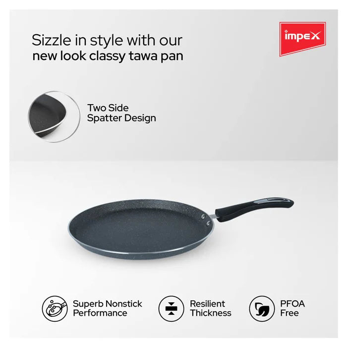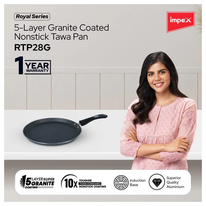 Impex Tawa Pan (28 cm) Royal 5-Layer Super Granite Nonstick Induction Base, 10 Times Tougher Non-Stick, for Dosa, Pathiri, Chapati, Roti, Parotta, Naan, Ease to Clean (28 cm, Grey)