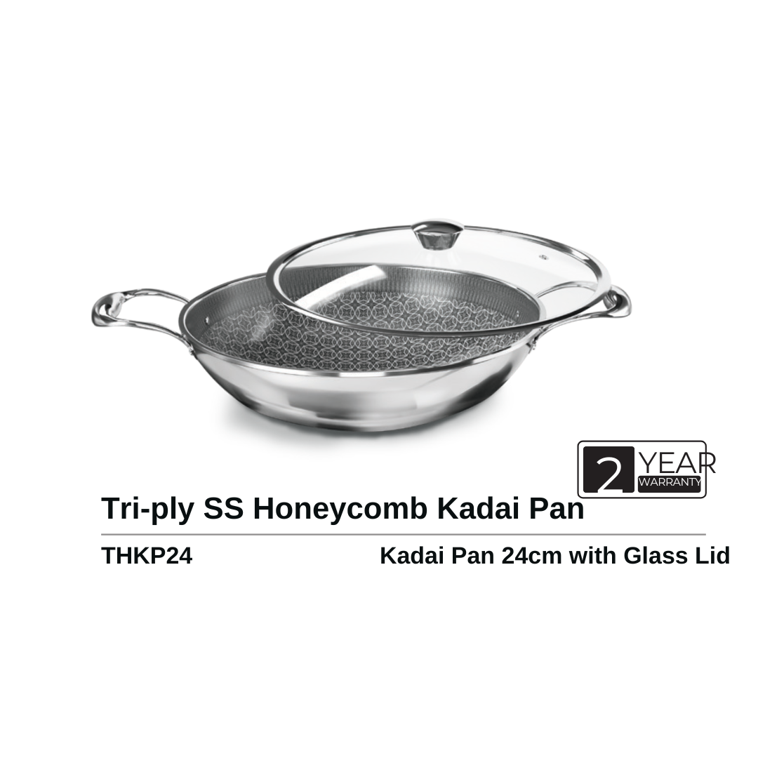 SS Tri ply Honeycomb Kadai 24 cm serene (THKP24)